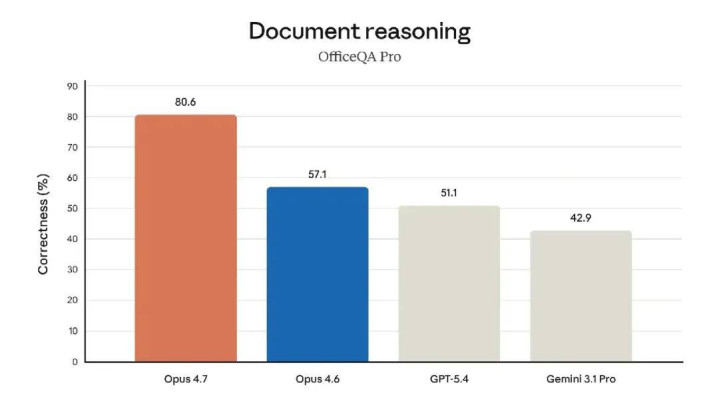 以下是 Opus 4.7 早期测试的一些亮点: 指令执行能力,Opus 4.7 的表现有了显著提升。有趣的是,这意味着之前版本编写的提示信息现在有时可能会产生意想不到的结果:之前的版本对指令的解释较为宽泛,甚至完全跳过某些部分,而 Opus 4.7 则会严格按照指令执行。用户应据此调整提示信息和相关设置。 改进的多模态支持。Opus 4.7 对高分辨率图像的处理能力更强:它可以处理长边高达 2576 像素(约 375 万像素)的图像,是之前 Claude 型号的三倍以上。这为依赖精细视觉细节的多模态应用开辟了广阔的空间:智能体可以读取密集屏幕截图、从复杂图表中提取数据以及需要像素级精确参考的工作。 实际应用能力提升。除了在财务代理评估中获得领先水平(见上表)外,Anthropic 的内部测试表明,Opus 4.7 比 Opus 4.6 更高效地进行财务分析,能够生成严谨的分析和模型,呈现更专业的演示文稿,并在各项任务之间实现更紧密的整合。Opus 4.7 在 GDPval-AA 评估中也处于领先水平。 内存占用方面,Opus 4.7 更擅长利用文件系统内存。它能记住长时间、多会话工作中的重要笔记,并利用这些笔记继续执行新的任务,因此这些新任务对预先获取的上下文信息要求更低。